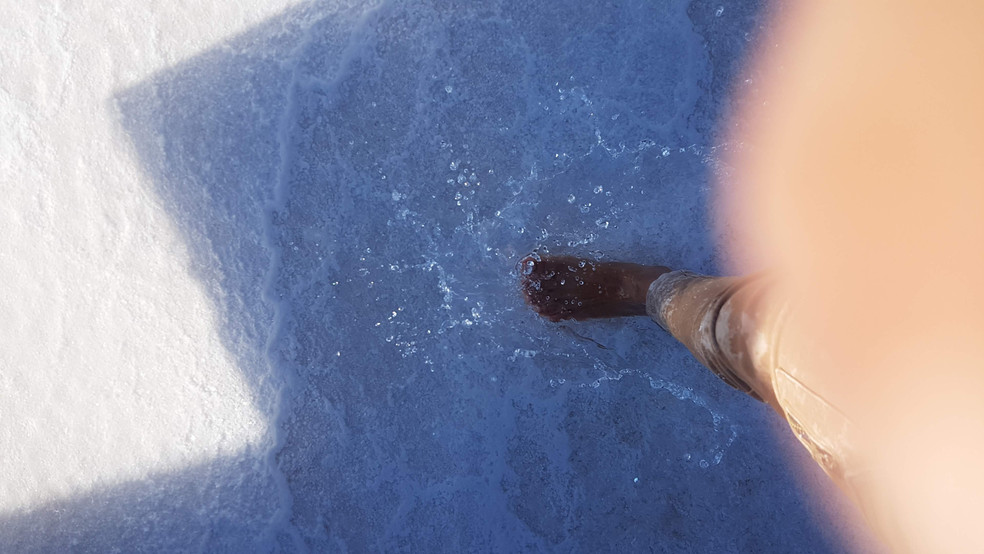 La sal se me seco en el pantalón, todo tieso, de yapa me moje un poco los pies supuestamente ayuda para el reumatismo, para el dolor de pie, efectos terapéuticos y hasta cierto significado místico.